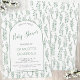 An elegant and modern watercolor eucalyptus greenery botanical pattern baby shower invitation. Back features a matching pattern. Customise the text to suit your celebration. Original art by Nic Squirrell