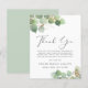 An elegant and budget-friendly funeral and memorial thank you card. This design features watercolors of sage green eucalyptus greenery with gold accents, "Thank You" in a pretty stylish script and your thank you message and loved one's name in simple modern typography.