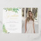 Announce your high school or university graduation with this trendy greenery graduation announcement photo card featuring hand painted watercolor eucalyptus leaves and gold calligraphy script. Personalise these cards with your own custom photo and personalised text.