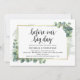 Greenery Eucalyptus, before our big day, Wedding Rehearsal Dinner Invitation card. Planning a wedding Rehearsal Dinner celebration with the to-be Bride and to-be Groom, before their BIG day? Invite the guests with this Rustic Wedding Rehearsal Dinner Invitation Card. Add your rehearsal dinner details in matching black font / lettering.