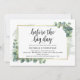 Greenery Eucalyptus, before the big day, Wedding Rehearsal Dinner Invitation card. Planning a wedding Rehearsal Dinner celebration with the to-be Bride and to-be Groom, before their BIG day? Invite the guests with this Rustic Wedding Rehearsal Dinner Invitation Card. Add your rehearsal dinner details in matching black font / lettering.