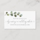 Ask your wedding guests to RSVP online on your wedding website with these minimalist RSVP enclosure cards. Featuring modern calligraphy script and watercolor eucalyptus branch.