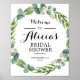 This is to welcome your guests sign featuring greenery eucalyptus flower design.
