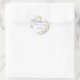 Perfect sticker for sealing bridal shower thank you notes or favours. Ivory white roses are nestled in eucalyptus leaves that decorate a thin gold geometric frame. The name is written in a large, lovely script text.
