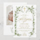 Eucalyptus Wreath Gold Cross Baptism Photo Invitation