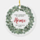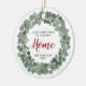 Eucalyptus Wreath Personalised 1st Xmas New Home Ceramic Ornament. Personalise with your custom information on both front and back.