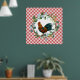 Great wall art for your farmhouse decor theme - features diagonal picnic red plaid background with watercolor eucalyptus wreath and colourful rooster illustration