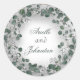 Eucalyptus Wreath Wedding Name Favour Green Silver Classic Round Sticker