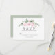 Rustic sprig of pink roses and peony flowers decorates the top of this pretty floral RSVP card. The back is sage green. This enclosure card is part of the Pink Rose Botanical collection that contains many coordinating items that you can use to create an elegant and unique wedding stationery package. You should see a link to it on this page. If you don't see the page or you need help with an item, please message me.