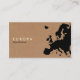 A business card with a map of Europe. Company details on the front with name and contact details on the back with the same European map motif.