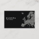 A business card with a map of Europe. Company details on the front with name and contact details on the back on a grey tonal version of the design.
