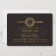 A luxurious invitation in shades of gold against a dark background with an abstract floral pattern. Well suited for any formal celebration. The gold wreath can hold initials or a year.
