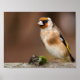 Wild goldfinch bird portrait close up native to Europe also known as Carduelis carduelis. The goldfinch has a red face and a black-and-white head. Male and females are very similar but the red face is slightly bigger on male birds.