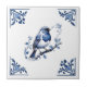 European Robin Bird Delft Blue White Floral Corner Tile