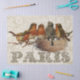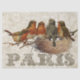 Five little European Robins sit together on a branch overlooking a nest and the word "Paris" in beautifully embellished lettering. The vintage ornate pattern in the background comes from an antique embroidered tapestry. Three different sizes available for decoupage or furniture transfers.