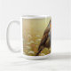 Colourful European robin stands gracefully on a wooden fence amidst a blooming meadow