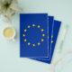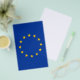 Blue flag with yellow stars. Official flag of the European Union. Great EU flag gifts and merchandise.