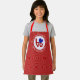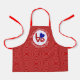 Kid's apron with a red, fractal background of squiggly squares. A white, fractal circle of squiggly squares holds the word LOVE with a heart shaped European Union flag for the O. Fun Valentine's Day gift for your favourite cook. Personalise with name, occasion, and year, or, create your own text. Can be customised for any occasion.
