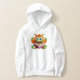 A Girls White Pullover Sweatshirt Hoodie With A Cute Orange And Green Monster With Book