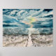 Evening beach sunset watercolor art painting pretty clouds blue black dark sunsets