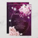 Sweet light pink cherry blossom flowers + rustic purple background + trendy geometric frames designed on custom Birthday Party Invitations. ((Contact ujean4791@gmail.com for custom work and/or matching items.))