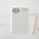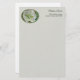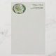 Artwork in pastel hues depicting a lovely white moonflower, relative of the morning glory, with a green leaf accents this stationery with personalised letterhead in dark green.