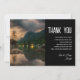 Flat thank you card with a beautiful photograph. An evening shot with mountains and a calm lake. Cottage lights off in the distance