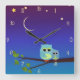 An owl cuddles with it's little one under a twilight sky of twinkling stars. Original Artwork by Night Owl's Menagerie, 2010.