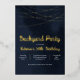 Real Foil, Celestial star filled night sky with strings of lights backyard party invitations Great for a graduation, retirement, birthday, shower, engagement party or any outdoor backyard party! Dark midnight blue watercolor background with scattered stars. Plenty of room to add more info.Select Gold in real foil! Want to customise this design even further? Edit using Design Tool under Personalise this template - Details
