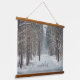Nature-themed Hanging Tapestry in soft grey and blue tones: forest power line at the snowy magical evening and a path through a winter forest. Perfect choice for minimalist, rustic or Scandinavian styl interior.