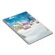 Evening winter village landscape with snow covered notebook