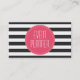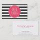 This chic & classy event planner business card features a classic black and white horizontal striped background. On top of the background is a bright pink decorative circle with a customisable text that reads "Event Planner". The back of the card is simple white with room for your name, job title & contact details. This is the ideal business cards for anyone in the event or wedding planning industry.