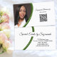 A green border sets off the photo on this business card design featuring a photo placeholder on the left with template name, title and QR code on the right. The back includes a colour coordinated design with text fields for the business name and details. Replace the placeholder photo with your vertical format photograph and your QR code on the front. Fill in the template fields, remove text or click customise to select a font style, size, and colour you like. Use your QR code to send customers to a website, reviews page, photos or other special page. The placeholder photo is courtesy pixabay.com.
