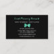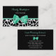 Girly black and white giraffe print event planning business cards for the event planner with a pretty mint green ribbon tied into a cute bow. Personalise this trendy animal print design by adding the name of the professional event coordinator or party planner. Flat printed image, not actual bow.