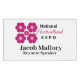 Custom Horizontal Event Badge with light grey background. All elements are changeable to suit your needs. Elements: logo of event, event attendee name, event attendee title. Magnetic strip on back.