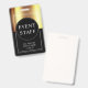 Template metallic gold and black Event Badge. Replace with your own event name and date. Elegant luxe glam style. This version comes with a lanyard, but you may choose your style of attachment that includes, lanyard, metal clip or retractable.