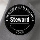 A badge for an Event Steward. Change the wording to your details. Steward badge. Official Steward badge. Black and white.