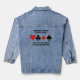 Are you an avid bridge player? Do you have any free time since you became a bridge player? Showcase your wry bridge / duplicate bridge sense of humour with this denim jacket featuring the four card suits along with the saying "Ever Since I Started Playing Bridge It Became Impossible To Have Any Free Time".