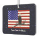 A Bald Eagle scans the sky from his perch on a tree branch; superimposed on a flag of the United States. Customise by adding your own text.