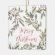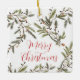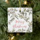 This Christmas ornament features a festive and elegant design that combines holiday charm with a personal touch. The ornament showcases a square shape with lush, hand-painted evergreen branches adorned with delicate berries, creating a classic and natural Christmas look. On one side, there's space for a custom family photo, bordered by the same evergreen design, adding a personal and warm touch to your holiday décor. The reverse side of the ornament displays a bold "Merry Christmas" greeting in a beautiful, flowing script, perfectly complementing the greenery. The overall design is both timeless and modern, making it a versatile piece that will look great on any Christmas tree.