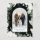 Evergreen & Cotton Flower Arch Photo Holiday Black Postcard