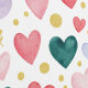 This charming seamless pattern balances the warmth of rose and coral pink with the earthy depth of teal and forest green watercolor hearts. This variation continues the whimsical theme of the later series, featuring delicate gold leaf sprigs, hollow gold heart outlines, and shimmering gold glitter dots. Set against a clean white background, it offers a sophisticated, nature-inspired palette that works beautifully for seasonal gift wrap, greeting cards, or boutique branding.
