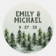 Evergreen Mountain Forest Green White Black Names Classic Round Sticker