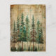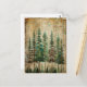 This postcard features a rustic watercolor of tall evergreen pines layered over an aged, vintage-style background with subtle ink splatters and textures. Perfect for nature lovers, junk journal enthusiasts, or anyone drawn to nostalgic forest landscapes, this design is ideal for heartfelt notes, journalling, or as an artful keepsake.
