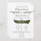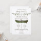 A wedding invitation featuring an illustration of two evergreen tree branches and a green canoe. Personalise the text.
