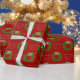 This pattern on this charming Christmas wrapping paper consists of an evergreen wreath with an antique white bow alternating with a custom greeting from your family or business.