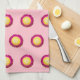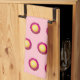 Seamless pattern of Everlasting flower printed on pink kitchen towel. Colours of the Everlasting flower are deep pink petals and yellow disc. Floral design kitchen towel for lovers of flowers or nature.