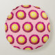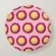 Seamless pattern of Everlasting flower with deep pink petals and yellow disc printed on round throw pillow. Floral design pillow for lovers of flowers and to add the beauty of nature on your chair, couch, sofa, in your bedroom or living room. You can also give it as a gift.