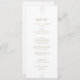 This wedding menu from the Everly Collection features a minimalist white design with slim art deco lines and warm gold type. The centred layout and generous spacing delivers a polished, modern look.