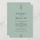 This refined art deco double sided wedding invitation from the Everly Collection features geometric line accents and retro typography on muted sage green. It’s minimal yet glamourous and ideal for modern weddings with vintage flair.